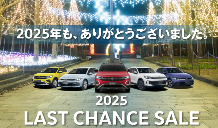 2025 LAST CHANCE SALE SHOWROOM Volkswagen 水戸(県庁前) Volkswagen 守谷 Volkswagen 日立 Volkswagen 鹿嶋 Volkswagen 牛久 Volkswagen つくば学園 Volkswagen 前橋荒牧 Volkswagen 古河 認定中古車センター