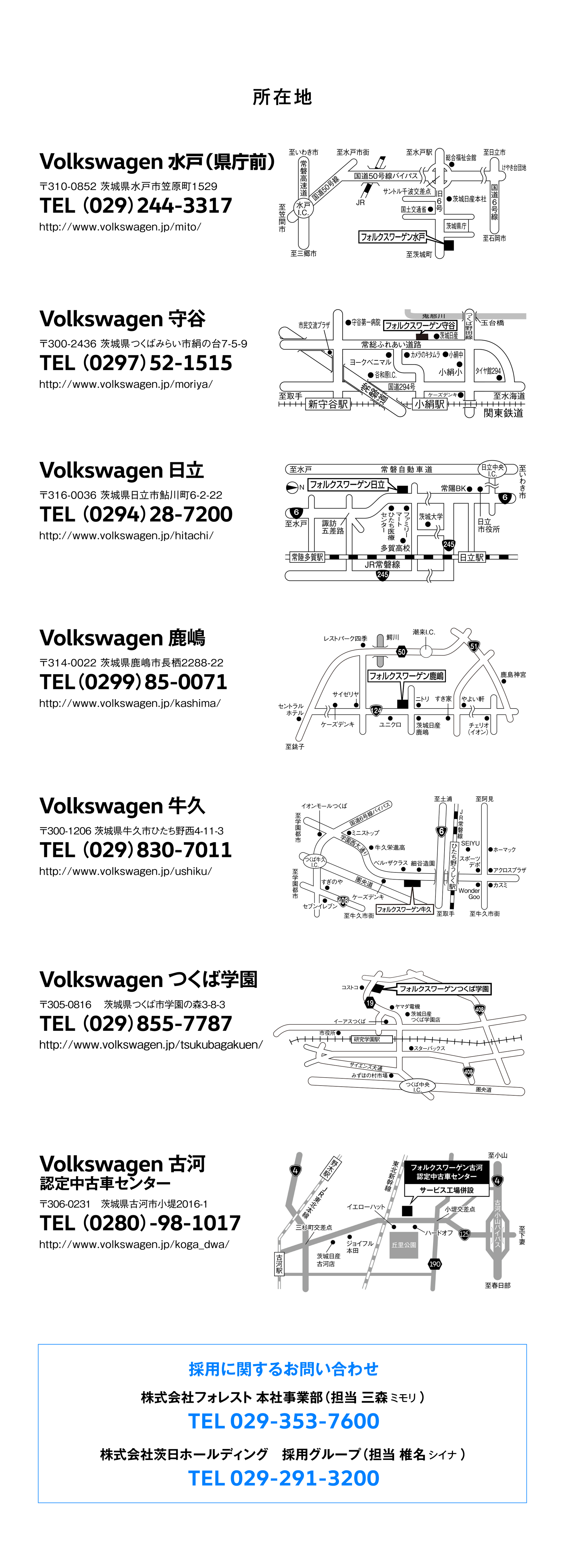 Volkswagen スタッフ募集 SHOWROOM Volkswagen 水戸(県庁前) Volkswagen 守谷 Volkswagen 日立 Volkswagen 鹿嶋 Volkswagen 牛久 Volkswagen つくば学園 Volkswagen 前橋荒牧 Volkswagen 古河 認定中古車センター